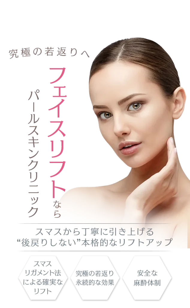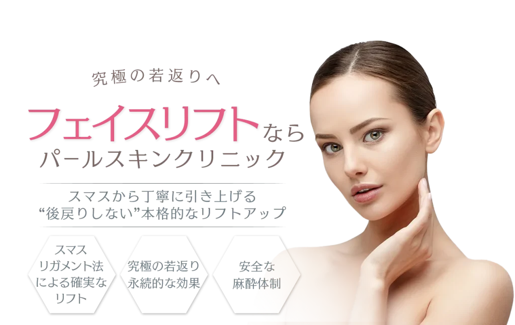 フェイスリフトは、加齢や重力の影響で下垂した顔の皮膚のたるみをリフトアップし、きれいなフェイスラインを取り戻す若返りの手術です。ある程度のダウンタイムがあっても、根本的にたるみを引きあげたい方に適しています。